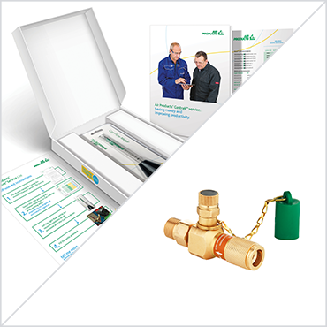 A set up kit for Integra® cylinders containing a MIG/MAG welding economiser, ties and flowtube.