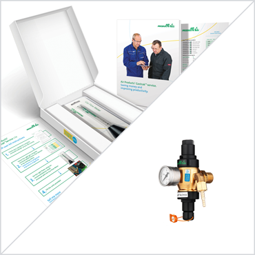 A set up kit for standard 200 bar cylinders containing a MIG/MAG welding economiser, ties and flowtube.
