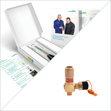 A set up kit for Integra® cylinders containing a TIG welding economiser, ties and flowtube.
